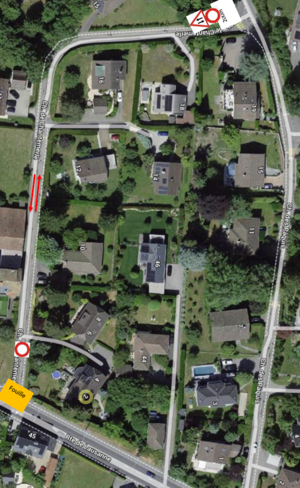 La circulation sera autorisée dans les deux sens au chemin de Chantemerle pour les riverains.