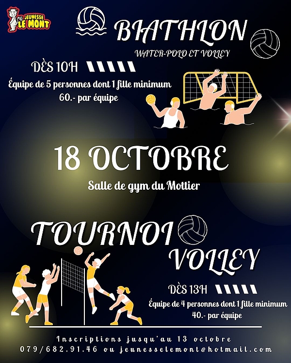 - Dès 13h : Tournoi de Volley, équipe de 4 personnes dont 1 fille minimum, 40.- par équipe