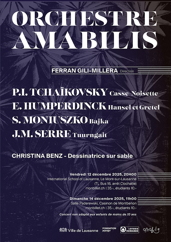 Au programme, un concert de saison, sous la direction de Ferran Gili-Millera, illustré par une animatrice de sable, autour des œuvres suivantes :