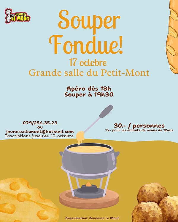 - Inscription jusqu'au 12 octobre : 079.256.35.23 ou au jeunesselemont@hotmail.com