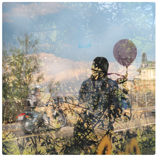 Pour Patricia Laguerre, les rencontres humaines, mais aussi ses échanges avec la nature et l’eau, sont des moteurs essentiels. Grande voyageuse, à son retour en Suisse, elle puise son énergie à explorer son environnement immédiat dans cette perspective. Ses balades le long du Léman sont ainsi l’occasion idéale de capturer la transformation surréaliste des silhouettes à fleur d’eau. Ses pas remontant jusqu’à l’avenue de Cour, l’exploration s’attarde sur la manière dont la nature s’intègre et se transforme dans l’environnement urbain. Parvenue à l’arrêt de bus du Pont Marc-Dufour, elle y fixe son inverse : les reflets urbains s’intègrent à la nature. Et au coeur de ces interactions l’humain, qui ne cesse de bouger, de passer : elle capte alors le furtif, en un clic unique. Tout ce matériau poursuit son chemin de remontée d’une ville et s’arrête aujourd’hui au Mont-sur-Lausanne.