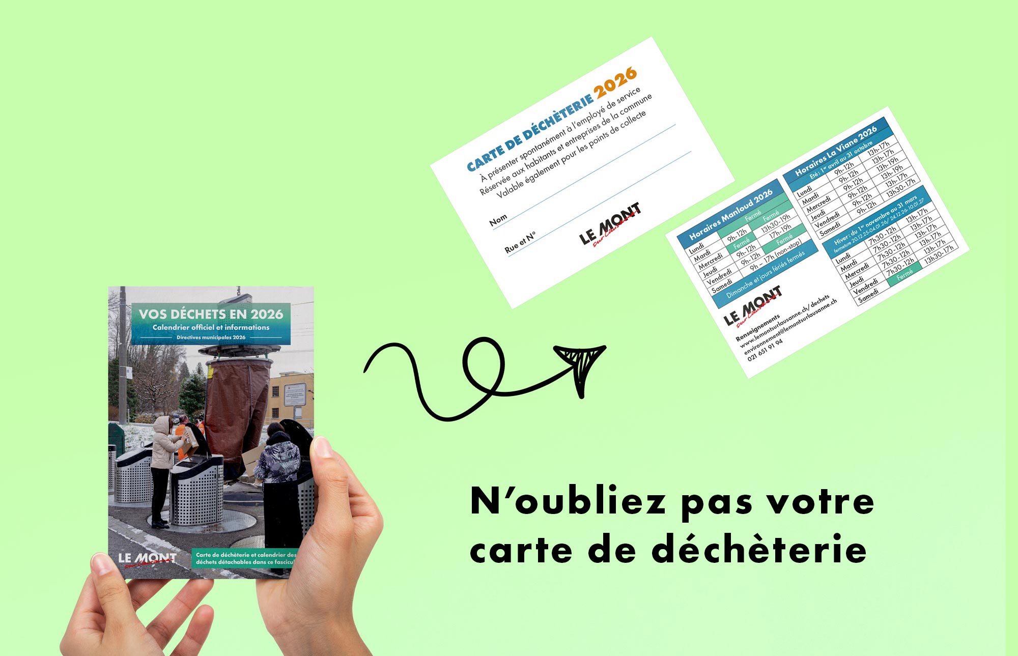 Chaque année, la Municipalité publie des directives déchets qui détaillent les différents modes de collecte pour les habitants et les entreprises. Cette brochure inclut le calendrier des déchets ainsi que la carte de déchèterie à détacher.